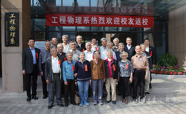陈旭、王大中等和物八班老校友合影留念