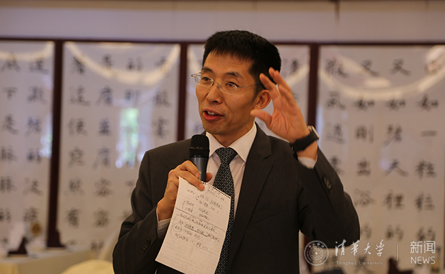 电机系主任曾嵘教授在电机系毕业50周年校友座谈会上向校友们介绍电机系的发展情况。陈淑玲 摄