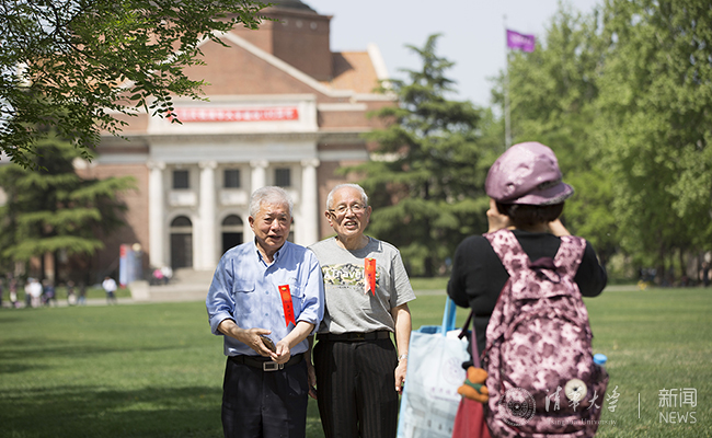 年轻的清华学子带着老校友参观母校点滴今日。贺施政 摄