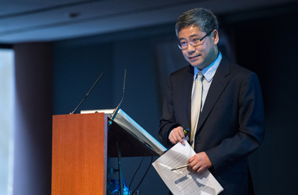 图为白重恩在演讲。