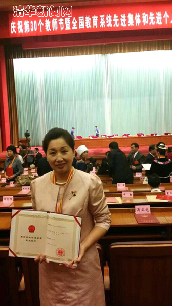 图为清华附小校长窦桂梅手捧获奖证书。
