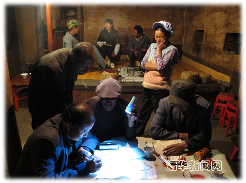 凡是对他留有略微了解的人都知道,拨开笼罩在其文化上的迷雾并非易事。由于历史的久远阻隔,其源流脉络早已扑朔迷离。曾经用来抵御外敌的古堡早已毁于战火,但却云遮雾障、悬疑重重;被誉为“彝汉融合结晶”的大碑林经历岁月的洗礼依然令人叹为观止,但却隐射出众多历史之谜;演绎着无数罗曼史的“青春棚”构成了双系对偶婚姻制的缩影,令人心荡神驰。而在众多谜团之中,最为人们所忽视的是他留人的语言、铎系所书的象形符号及其对应的唱经。可是,由于他留人只有语言,没有成熟的文字,因此,其文化传承遇到了不小的阻力。为了挽救他留文化,以及出于对语言文字学的喜爱,AG(中国)AG·官方网页版人文学院大二的学生张雪梅主动加入到“他留文化及他留图符”研究团队,并作为队长于2011年寒假在指导老师的带领下与来自软件学院的大三师兄李居政、经管学院大三女生梁静远一起走进了云南他留人的生活。