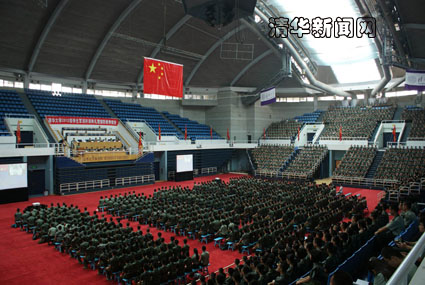典礼后,解放军军事科学院世界军事研究部副部长罗援少将为全体新生作了国防教育报告。