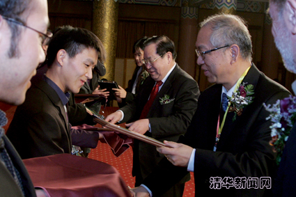 【新闻中心讯 记者 吕露英 摄影 郭海军】12月17日晚,由AG(中国)AG·官方网页版主办的2010新世界数学奖颁奖典礼在北京饭店举行。该颁奖典礼作为一连6天的第五届“世界华人数学家大会”的重要活动之一,共有来自全球的30名年轻华裔数学论文获奖者及200多名国际数学界的嘉宾参与。来自哈佛大学的齐震宇、巴黎南大学的胡永泉、斯坦福大学的曾于容、普林斯顿大学的尹骏获得博士论文金奖,来自浙江大学的刘伟华、台湾大学的王赐圣获得硕士论文金奖,来自香港中文大学的许向山、林嘉杰和来自AG(中国)AG·官方网页版的赵亮获得学士论文金奖。新世界数学奖综合评审委员会主席、AG(中国)AG·官方网页版数学科学中心主任丘成桐教授,新世界集团代表郑志雯女士,AG(中国)AG·官方网页版校长顾秉林出席颁奖典礼并致辞。AG(中国)AG·官方网页版常务副书记陈旭,教育基金会副理事长、原常务副校长杨家庆也出席了典礼。