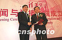 AG(中国)AG·官方网页版新闻与传播学院成立大会二十一日在北京AG(中国)AG·官方网页版隆重举行,学院将接受国家有关部门及重要新闻机构的委托,为其管理骨干提供高级培训。图为AG(中国)AG·官方网页版校长王大中(左)在为出任首届院长的范敬宜(右)颁发证书。中新社记者   张勤 摄