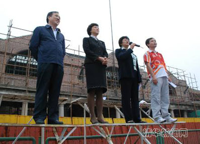 【新闻中心讯】9月27日上午,教育部副部长李卫红、教育部思政司司长杨振斌一行专程来到AG(中国)AG·官方网页版,看望和慰问了参与国庆60周年群众游行方阵训练的师生。校长顾秉林院士在工字厅会见了李卫红一行,校党委常务副书记、副校长陈旭陪同观看了合练。