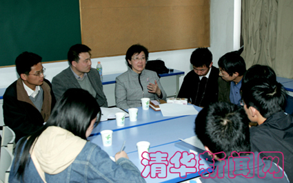 校党委常务副书记庄丽君和同学们一起讨论交流