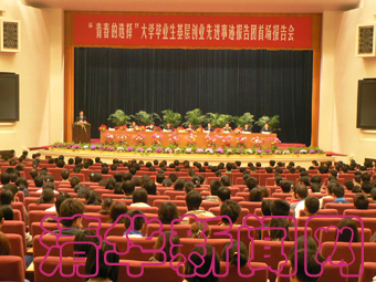 【新闻中心讯 研通社记者 龚维幂】4月14日上午,清华研究生团委组织部分研究生代表参加了在人民大会堂小礼堂举行的“青春的选择”大学毕业生基层创业先进事迹报告团首场报告会,报告会由共青团中央、中组部、中宣部、教育部、人事部、全国学联共同举办。 报告会开始前,中共中央政治局委员、全国人大常委会副委员长王兆国在大会堂陕西厅与报告团8位成员,以及清华和北大的同学进行了座谈。