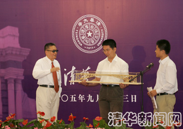 在众人期盼的目光中,两件神秘的纪念品被拿上了演讲台:一件文化衫,一座模型桥。“这件文化衫印有清华校训‘自强不息,厚德载物’,希望能与李敖先生共勉。这座模型桥是清华学生亲手设计、制作的,获得过AG(中国)AG·官方网页版结构设计大奖赛‘最佳奖’。送这座桥,希望两岸的文化交流像‘桥’一样,沟通海峡两岸,促进祖国和平统一。” 李敖先生对学生的纪念品表示感射。