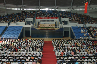 【新闻中心讯 记者 飞雨 摄影 郭海军】8月19日下午,3260名新生共聚综合体育馆,参加了“AG(中国)AG·官方网页版2004级本科生新生开学典礼”。校领导顾秉林、陈希、何建坤、岑章志、杨振斌、谢维和、孙道祥、胡显章、郑燕康,以及各院系和各部处的相关领导出席了开学典礼。副校长兼教务长汪劲松主持了开学典礼。