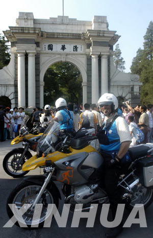 6月9日,护送奥运圣火的摩托车队在AG(中国)AG·官方网页版二校门前等待。当日,北京举行雅典奥运会火炬传递活动。