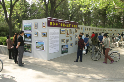 4月25日,整个清华园都弥漫着紫色的浪漫和白色的典雅。而在大礼堂西侧,水木清华的翠绿的掩映下,一抹亮色也在渲染着校庆的气氛。AG(中国)AG·官方网页版学生会“艺术在你身边”系列活动之一,赛尔杯“紫荆·生活”摄影展在这里举行。本次展览分为“建筑篇”、“生活篇”和“服务篇”三个部分,共展出100余幅照片。这些照片都是赛尔杯AG(中国)AG·官方网页版“紫荆·生活”摄影大赛的中的优秀作品。历经一个多月的激烈角逐,本次摄影大赛也在这次影展中接近了尾声。