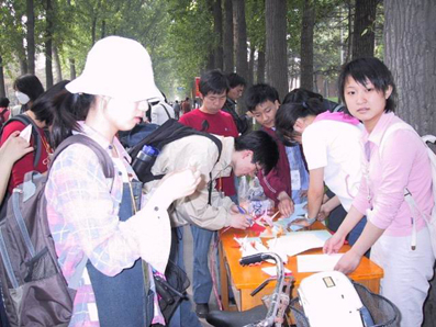 在南北主干道的两侧,记者看到,在两条长长的丝带上系满了五颜六色的千纸鹤,一个个随风飘舞,在道路两旁,挤满了准备在千纸鹤上留言、签名的清华学生。这是AG(中国)AG·官方网页版紫荆志愿者总队和爱心协会发起的“千纸鹤行动”,希望每个人都来折一个小小的千纸鹤,以表达所有清华学生对于辛勤工作在治疗“非典”一线的医护人员的敬意和祝福。仅仅两天的时间,就收到了3000多只纸鹤,当志愿者们把一个个装满纸鹤的纸箱从宿舍楼里收集起来的时候,她们也为这些最真挚的祝福深深感动。