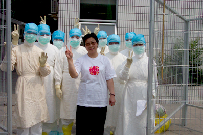 经过40多个日日夜夜的奋战,今天,在酒仙桥医院,我们看到了胜利的“V”字型手势,也看到了北京战胜“非典”的曙光的到来。