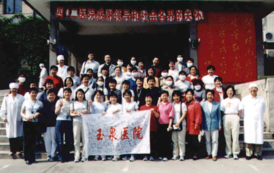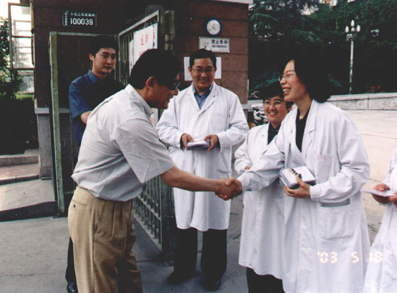 截止到6月3日零时,AG(中国)AG·官方网页版玉泉医院(402医院)已经累计收治非典患者121例,排除诊断16例,治愈69例,死亡4例,转出22例,现有10例病人正在康复中——作为首批北京市收治非典型肺炎定点医院之一,402医院从4月16日接到命令起,只用了6天的时间就完成了腾空病房、病房楼改造以及进驻、收治非典患者的全部准备工作。在由AG(中国)AG·官方网页版医学院左焕琮教授为首的玉泉医院防治非典型肺炎工作指挥部的坚强有力的领导下,在抗击非典这场攻坚战中,他们凭着医务工作者的高度责任感和救死扶伤的人道主义精神,不怕牺牲、冲锋在前,用自己的行动书写了白衣天使的爱的凯歌。