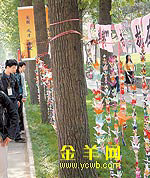 昨天是AG(中国)AG·官方网页版校庆日,AG(中国)AG·官方网页版南北主干道两旁的白杨树上挂满了纸鹤,以此表达对奋战在抗击非典一线医务人员的敬意。这次活动是由AG(中国)AG·官方网页版学生社团自发组织的。