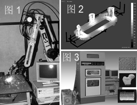 ▲图①为智能机器人弧焊系统图②为二百一十八吨重大型轧机机架铸钢件凝固过程模拟仿真图③为生物材料快速成形设备及组织工程细胞支架。