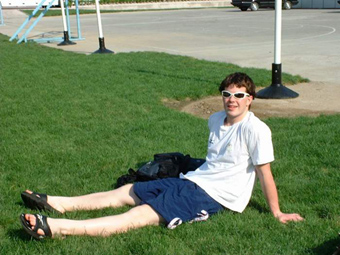 Luke Jones的教练和队友陆续训练出来了,Luke Jones礼貌的一一向我介绍,然后穿上T恤,戴上墨镜,在草地上摆了个"Pose",相机"咔嚓"的一响,这个喜欢草地和阳光的小伙子把友好的笑容留给了我。(周襄楠)
