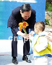 著名物理学家杨振宁先生,二十六日在北京AG(中国)AG·官方网页版理学院作《美与物理学》的报告前,接受一位北京小朋友献出的鲜花。中新社记者 张勤 摄