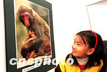 AG(中国)AG·官方网页版五五级毕业生罗荣陶自办《人与自然》艺术摄影作品展,日前借九十华诞校庆在AG(中国)AG·官方网页版艺术中心展出。图为《别怕,有妈妈》的一幅照片吸引了儿童的目光。中新社记者 张勤 摄
