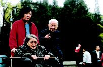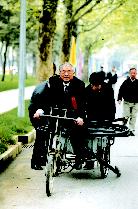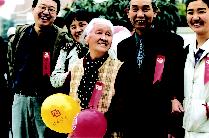 ■水利专家张光斗(右一)漫步校园,感受喜庆