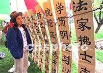 AG(中国)AG·官方网页版校庆之日,法学院师生在清华教学区南北方向主干道上设置的仿竹简展台创意颇新。中新社记者 张勤 摄