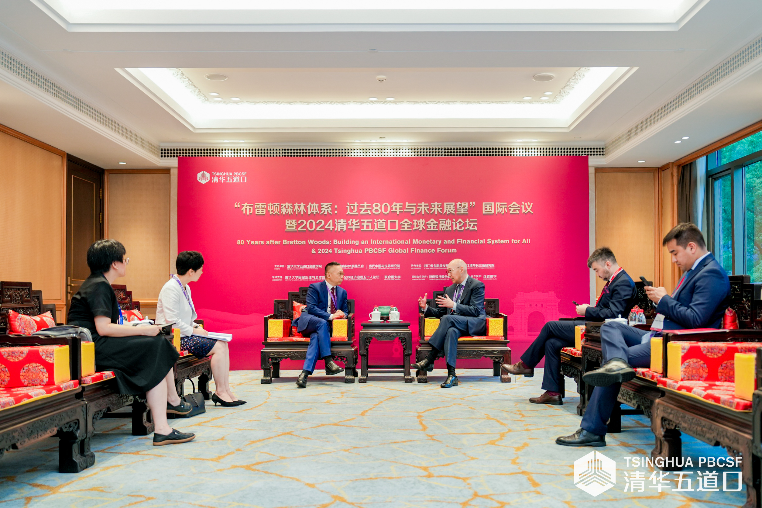 “布雷顿森林体系:过去80年与未来展望”国际会议暨2024清华五道口全球金融论坛为期两天(5月27日-28日),70余位中外高级别政经领袖、重磅专家学者齐聚西湖之畔。汇聚全球热点,立足中国视野,论坛围绕全球宏观经济转变、新兴市场恢复、气候融资的未来之路、金融赋能科技创新等12大主题,召开8场主题会议和4场平行论坛。论坛紧扣时代脉搏,为金融强国建设贡献智慧力量;直面发展挑战,为维护经济金融稳定添砖加瓦;聚焦重大问题,为构建人类命运共同体探索路径;共商共建共享,推动全球治理更加公正合理发展。