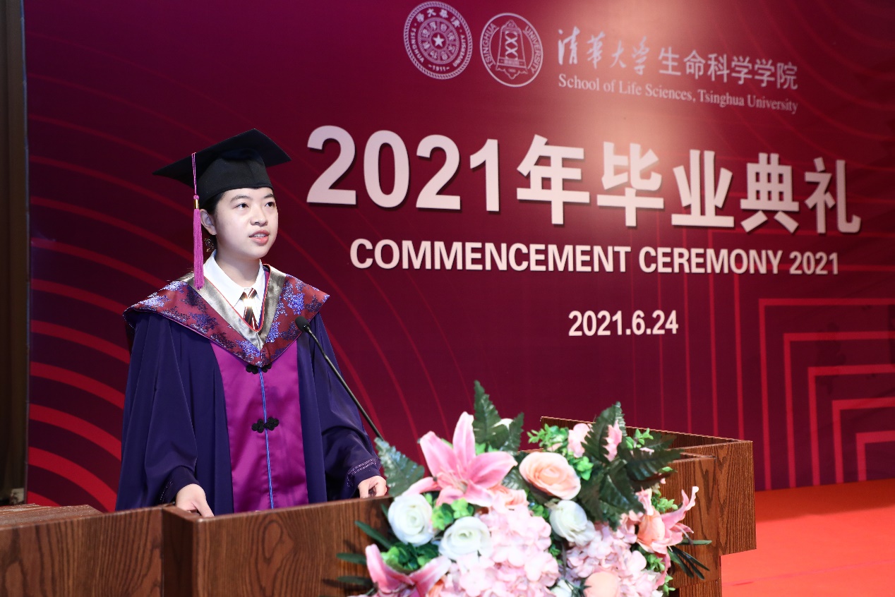 本科生代表杨雨荻回顾了自己四年学习生活中的成长和蜕变,她表示,母校的培养、恩师的点拨,让她完成了从高中生到大学生的角色转变。未来,她将继续在清华精神的指引下,以先哲、大师为典范,把个人的奋斗融入到祖国建设的大潮中,为国家的建设贡献自己的力量。