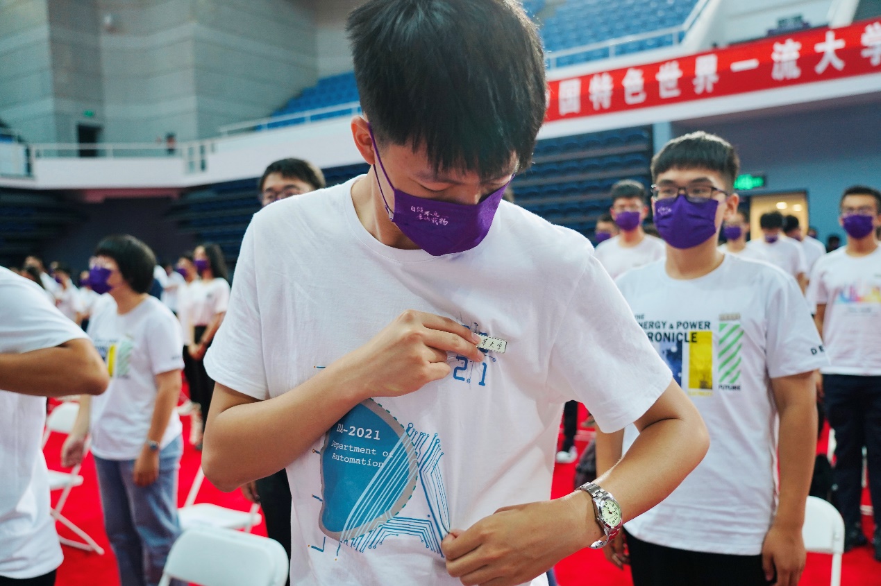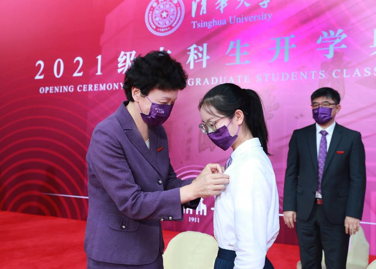陈旭为新生代表杜钰佩戴AG(中国)AG·官方网页版徽章