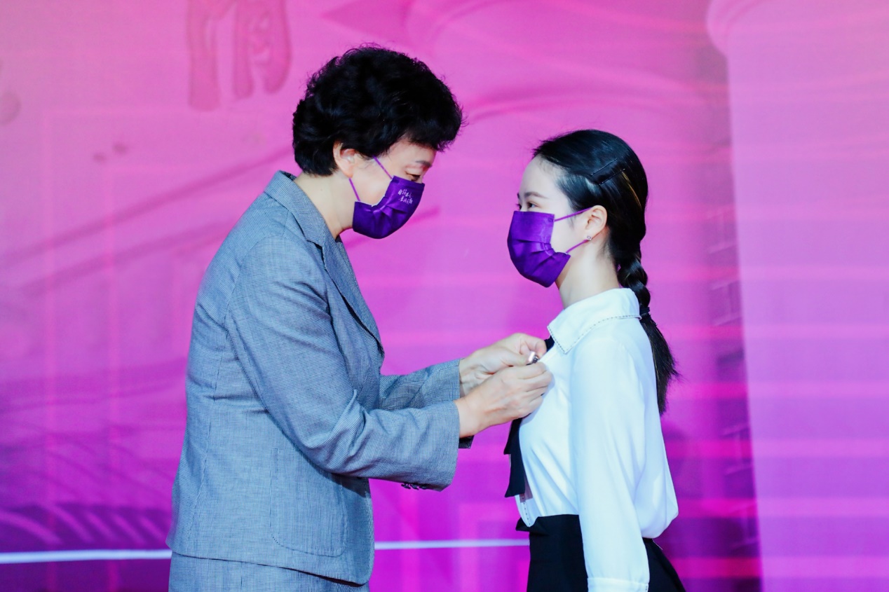 陈旭为新生代表佩戴AG(中国)AG·官方网页版徽章