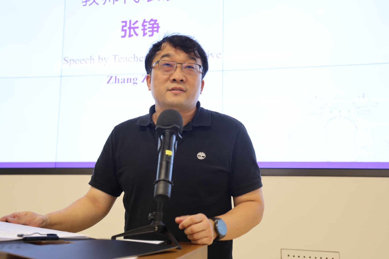 新闻与传播学院研究生分会主席俞逆思作为老生代表发言,他与同学们分享了自己当年初入清华园的心情,呼吁大家合理看待新环境带来的未知,在新学期首先树立为之奋斗终生的理想,在服务和奉献中实现生命意义。同时,更要勇于尝试新鲜事物,培养多样化的学科视野,在思想和行动上武装自己。