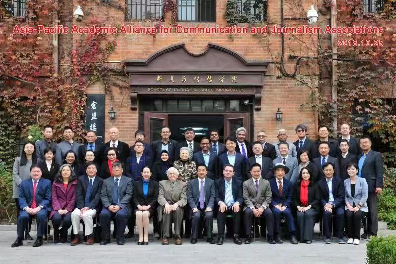 亚太新闻传播联盟成立大会后合影,新闻学院陈昌凤教授为首任主席。