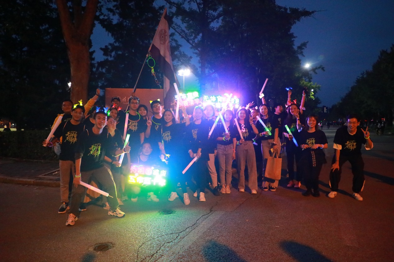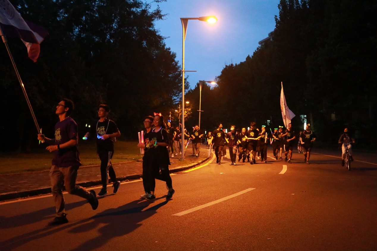 荧光夜跑以低碳、健康、青春为宗旨,号召清华师生通过慢跑强健身心,将健康生活的理念传递给周围每一个人。开跑前,十佳体育俱乐部“Runislove跑团”的热身教练带领师生热身。下午六时,史宗恺带领同学们喊出“无体育,不清华”“为祖国健康工作五十年”的响亮口号,并为夜跑鸣枪。现场师生佩戴荧光头饰、荧光眼镜等各具特色的荧光饰品,在体育俱乐部领跑团的带领下,从东操出发,在综合体育馆“为祖国健康工作五十年”站点、六教“天行健,正清华”站点、紫操“无体育,不清华”站点等手持荧光灯牌打卡,最终返回东操领取完赛证书,和东操展板、荧光拱门合影留念。汗水、晚风、绿色和光影点亮傍晚时分的清华园,留下欢乐的青春印记。本次荧光夜跑也将为接下来10月份的跑步月活动预热。