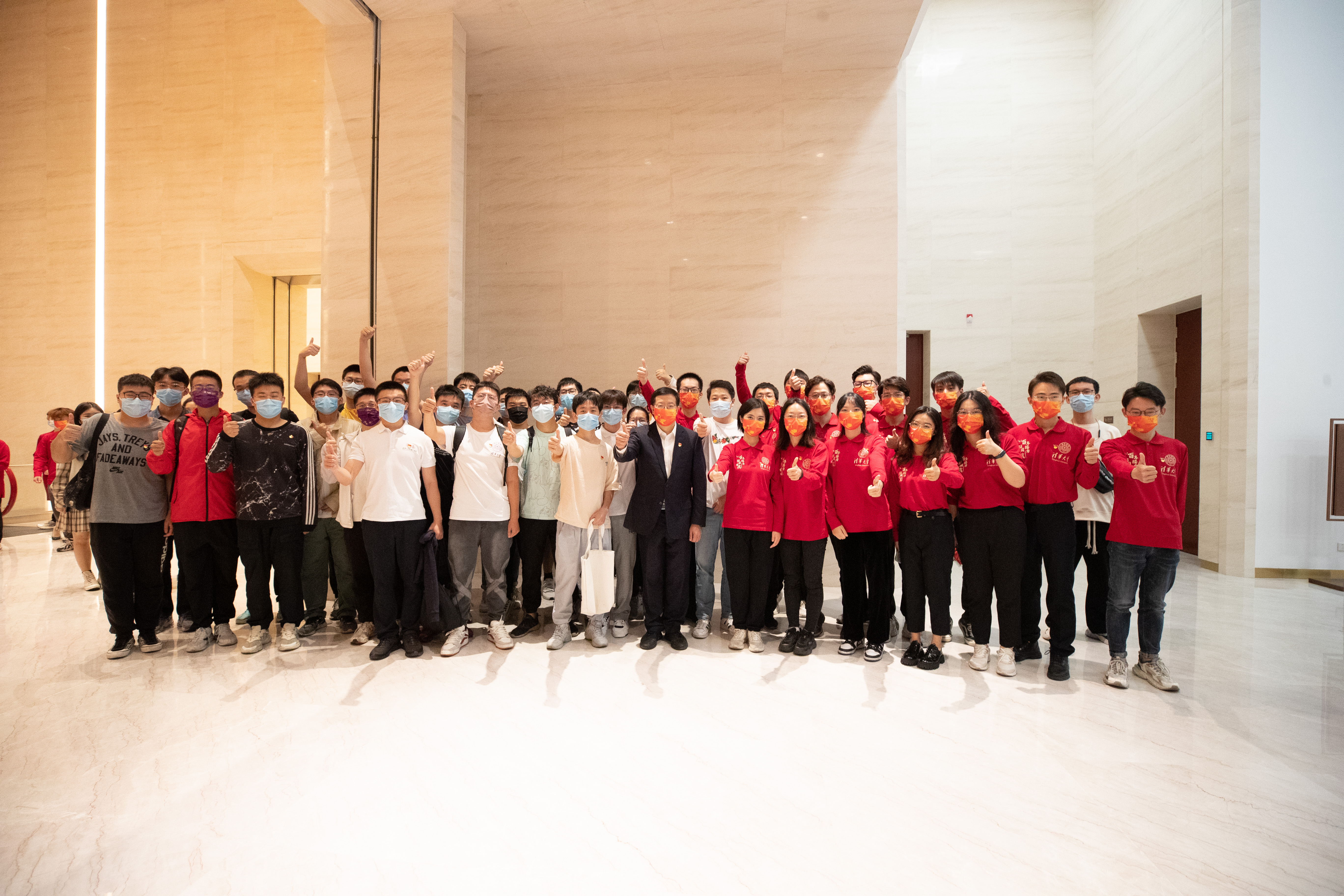 青春献礼二十大,强国有我新征程。来自机械系、医学院等院系的同学们也自发前往参观党史馆,邱勇在党史馆内偶遇了同学们,同他们亲切交谈,并合影留念。