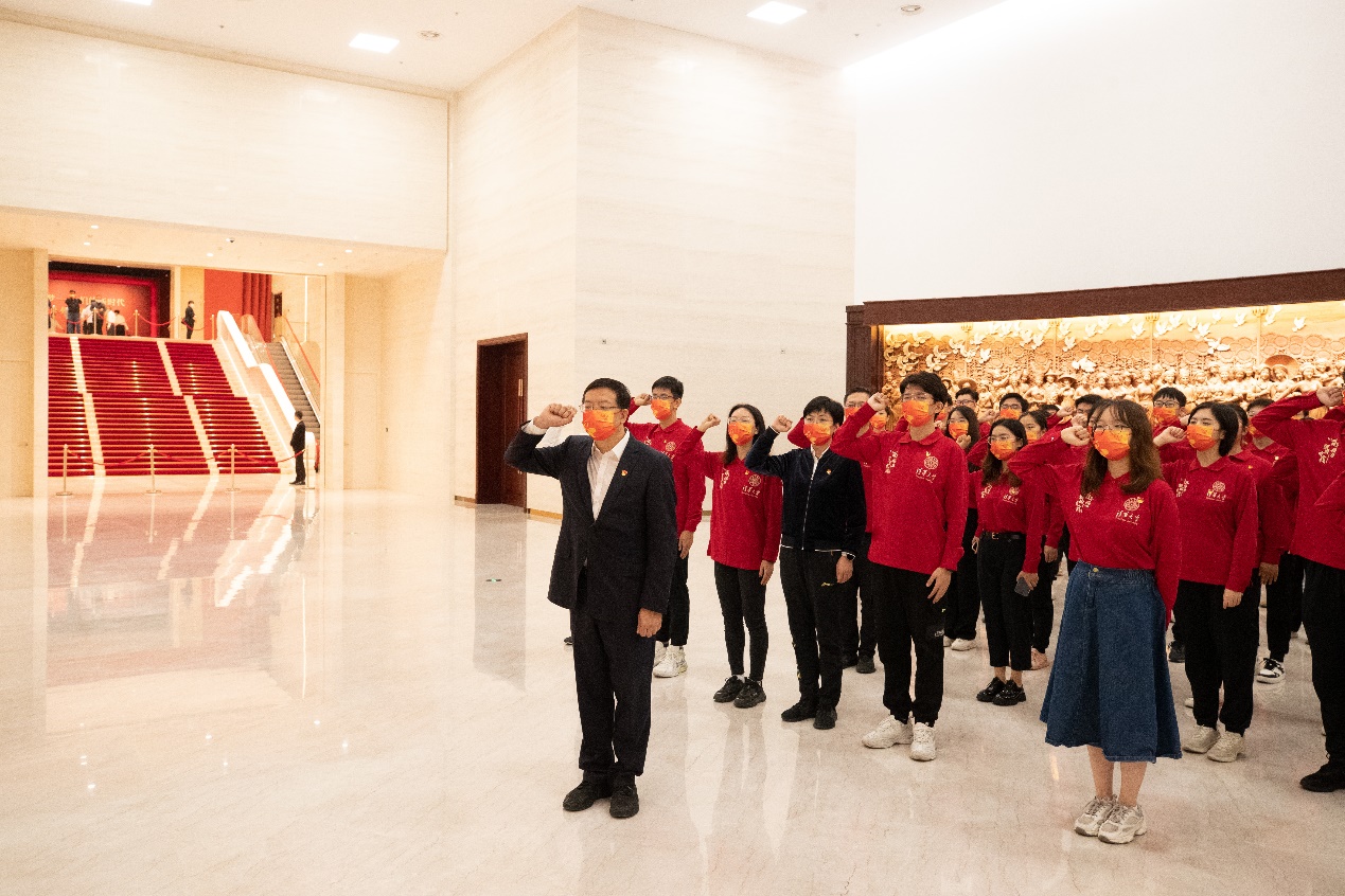 “我志愿加入中国共产党,拥护党的纲领……”参观最后,面对鲜红的中国共产党党旗,邱勇带领师生重温了入党誓词,不负铮铮誓言,不忘入党初心。
