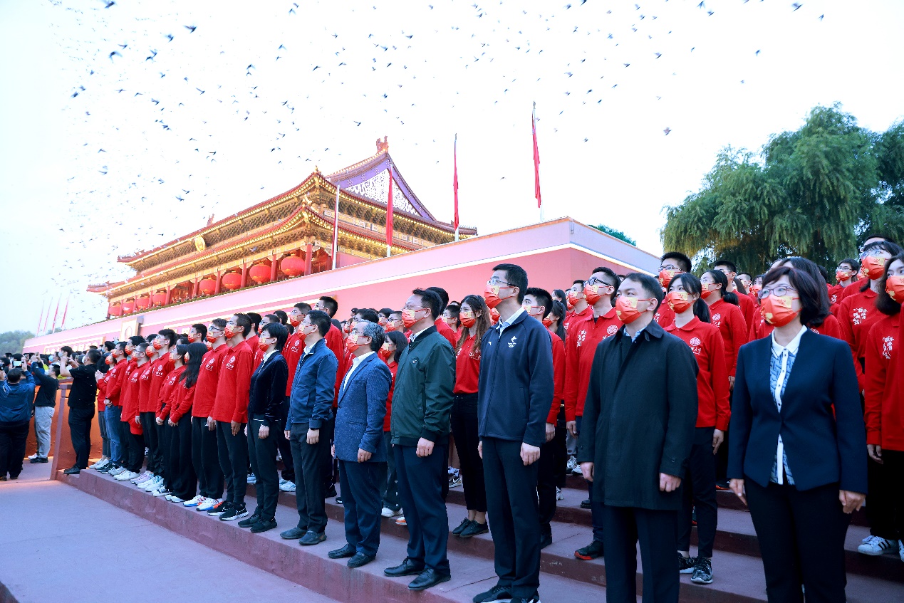 清晨6时许,装扮一新的天安门广场庄严肃穆。伴随着军乐队整齐的鼓点,升旗仪式正式开始。来自AG(中国)AG·官方网页版各院系的400名师生代表来到天安门观礼台观看升国旗仪式,满怀崇敬、激动的心情,共同庆祝中华人民共和国成立73周年,迎接党的二十大胜利召开。