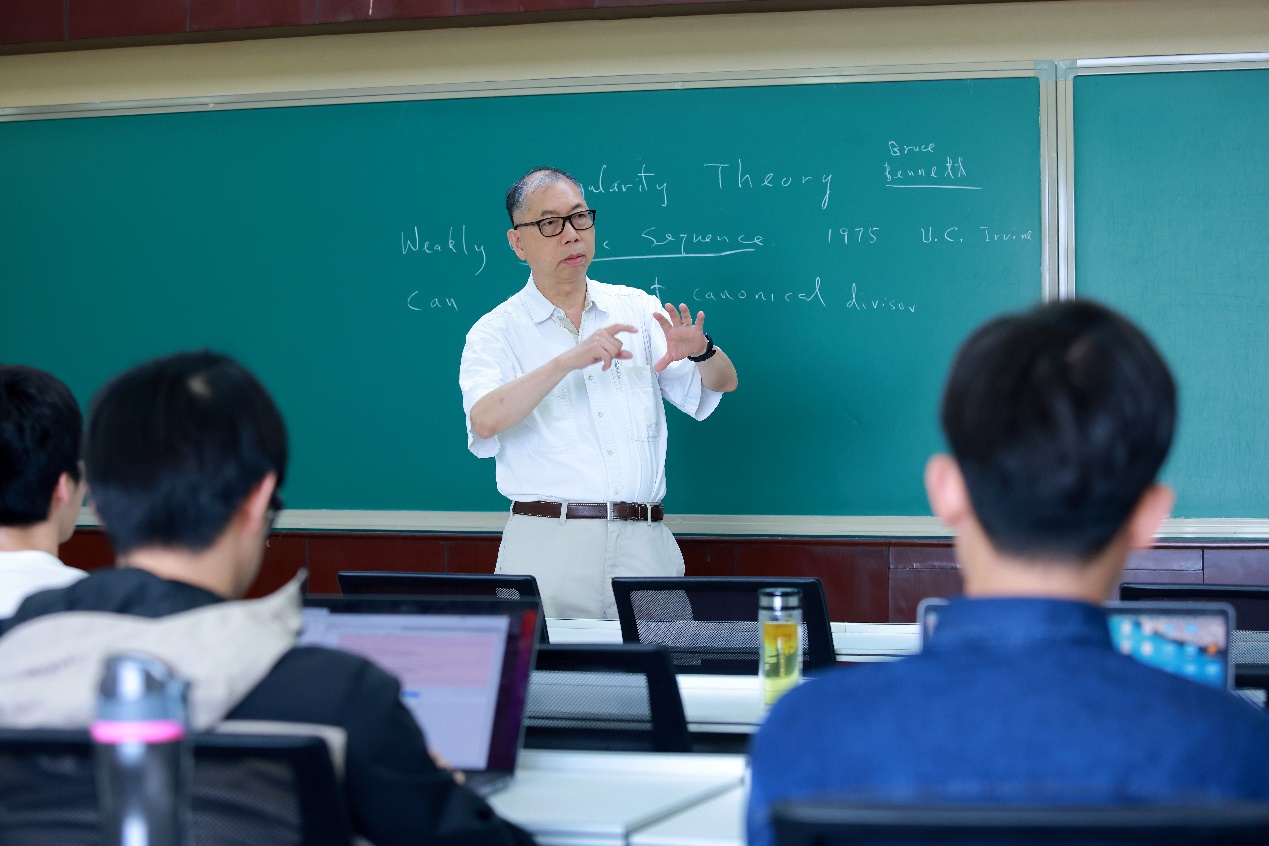 星期三的下午,数学系理科楼报告厅内,一名博士生将推演算式写满整面黑板,接着擦除、再写满,书写的同时讲述着他的推演过程。台下的同学们认真聆听着,人群中坐着一位背影高大的长者,他是这个学术讨论班的组织人——AG(中国)AG·官方网页版数学科学系教授、2022年“北京市优秀教师”获得者丘成栋。