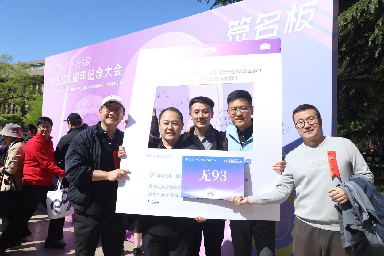 各位校友从四面八方重返母校欢聚一堂,大礼堂前、签名墙边,难掩的笑容下是大家久违的心潮澎湃。“今天回到母校非常激动,毕业20年后重新见到老师和同学,看到大家在各行各业为祖国、为社会作出了很多贡献,真的很感动。”理学院1999级校友王雪说,“希望大家都能记住我们的口号‘廿念不忘,久久同心’,未来一起砥砺前行,彰显清华人的昂扬风采。”“祝愿母校越来越好,也祝愿广大校友在实现中华民族伟大复兴的新征程中贡献更大的清华力量。”电机系1999级校友徐明说。