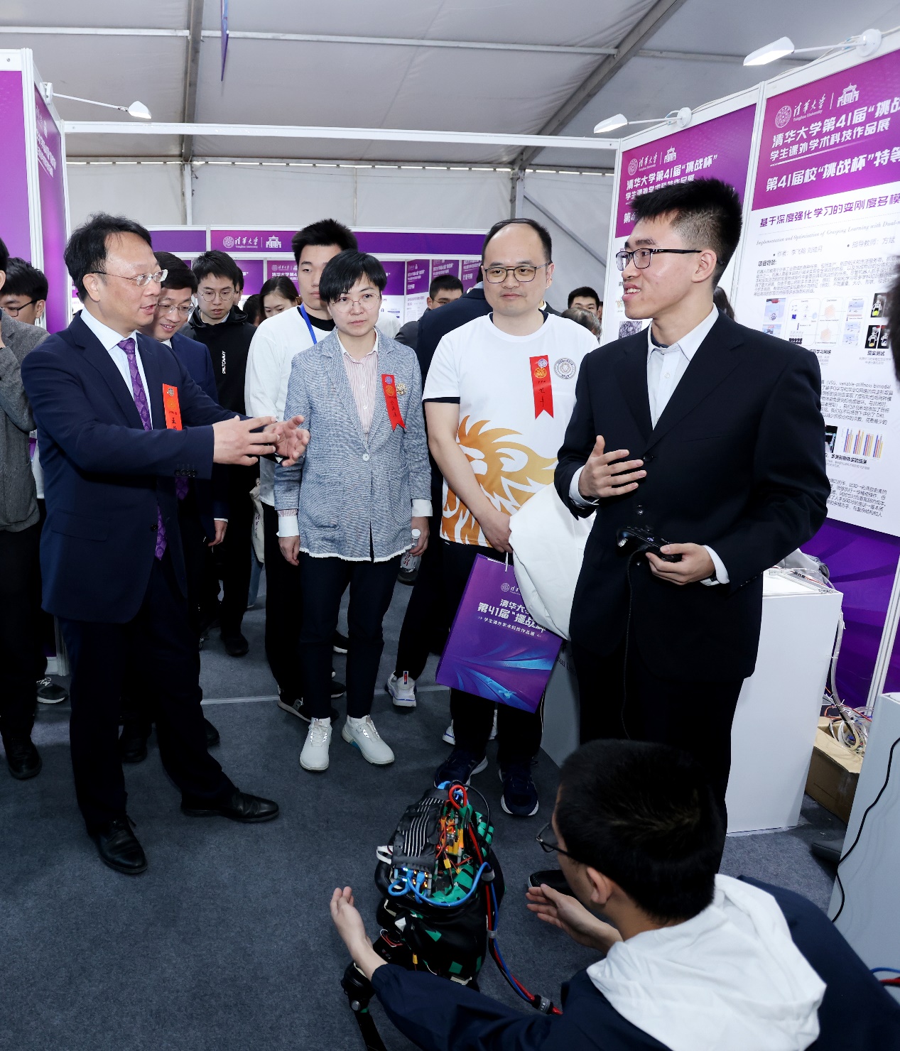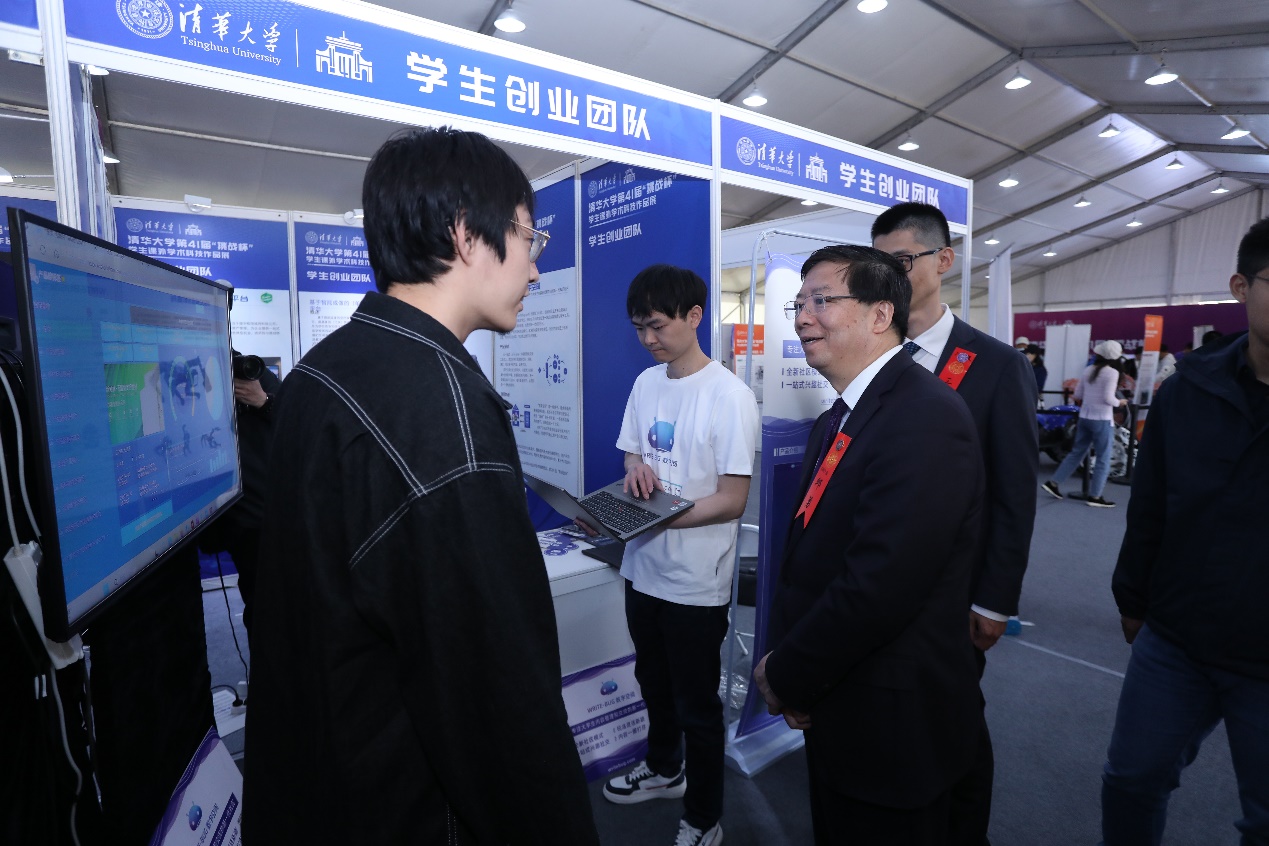 王希勤在讲话中表示,回顾四十年的发展历程,清华“挑战杯”为学生课外科创实践搭建了展示舞台,衍生出支持体系,塑造了价值取向,为学校拔尖创新人才培养提供了重要支撑。希望同学们能牢记习近平总书记的嘱托,深刻理解把握时代潮流和国家需要,在科创实践中始终坚持惟真惟善,解决真问题、真解决问题;努力做到易知易从,使科创成果透彻易懂、深入浅出,让研究被更多人掌握和运用。希望相关单位在学生科创工作中积极探索实施融通战略,加强学科交叉、促进产教融合,推动学生科创成果水平不断提升。