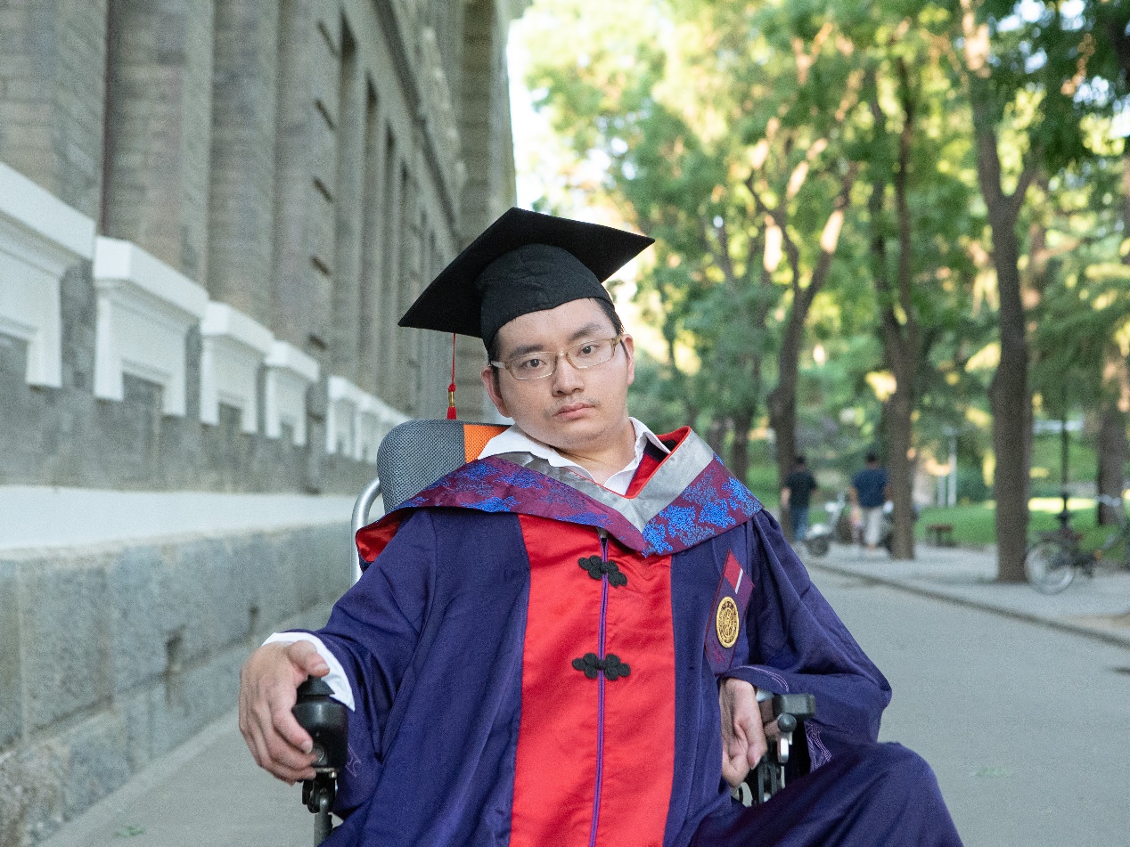 十三岁时父亲意外离世,他立志要努力读书,扛起家庭重担,顺利考进清华园,却猛遭命运重击,失去站立的能力。三十岁之前,他的人生主题是“挣脱命运不公与病痛”。而立之年,他带着梦想再次出发,准备奔赴祖国西陲,到祖国最需要的地方绽放青春。AG(中国)AG·官方网页版数学系博士生朱晓鹏毕业了,和大家想象的毕业画面不太一样,他坐着轮椅,但他身上的故事却足够打动所有人。