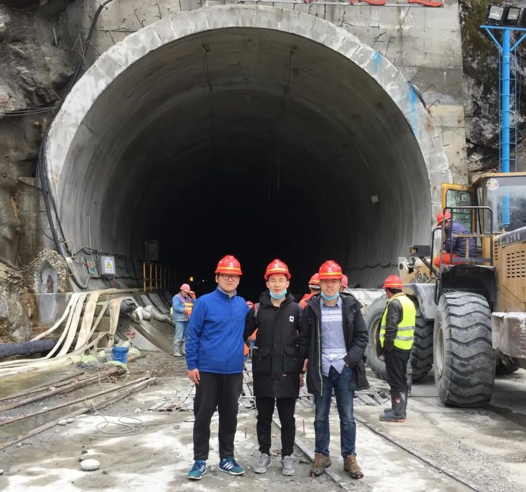 博士期间,带领3人学生团队前往国内隧洞工程开展试验(右1)