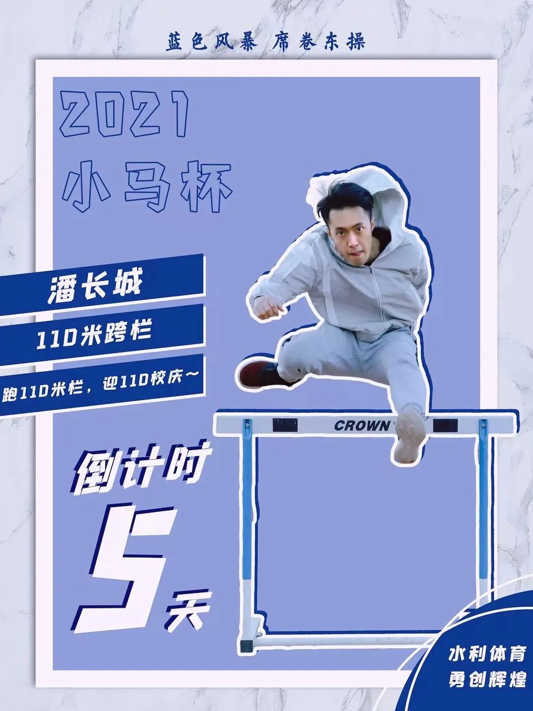 代表水利系参加清华“马约翰”杯运动会110米栏项目的宣传海报
