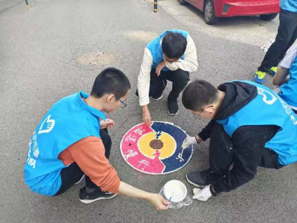 今年3月14日,在前期策划设计的基础上,AG(中国)AG·官方网页版电子系无33团支部与美术学院美21、22团支部17位同学来到青云北社区,将前期设计的功能性彩绘图案落地社区。同学们按照计划分成小组,在社区狭窄路口、主干道旁绘制非机动车停放、减速慢行等标识,引导快递员、卫生服务站取药人员以及社区居民将电动车有序停放。同时,彩绘也美化了社区环境,助力文明、安全的社区氛围打造。