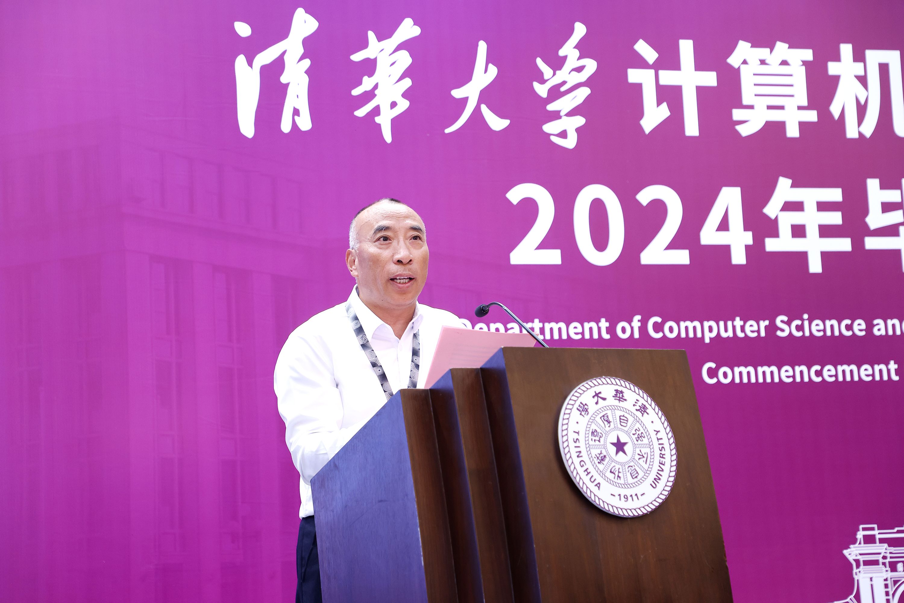计算机系1981级校友、中国工程院外籍院士、德国汉堡大学计算机系教授张建伟以“逐梦卓越,融合创新,造福人类”为主题发言。他分享了关于持续创新、跨界融合服务于社会及重视科技伦理的深刻见解,并强调毕业后清华精神也将继续指引毕业生们追求梦想和实现价值。