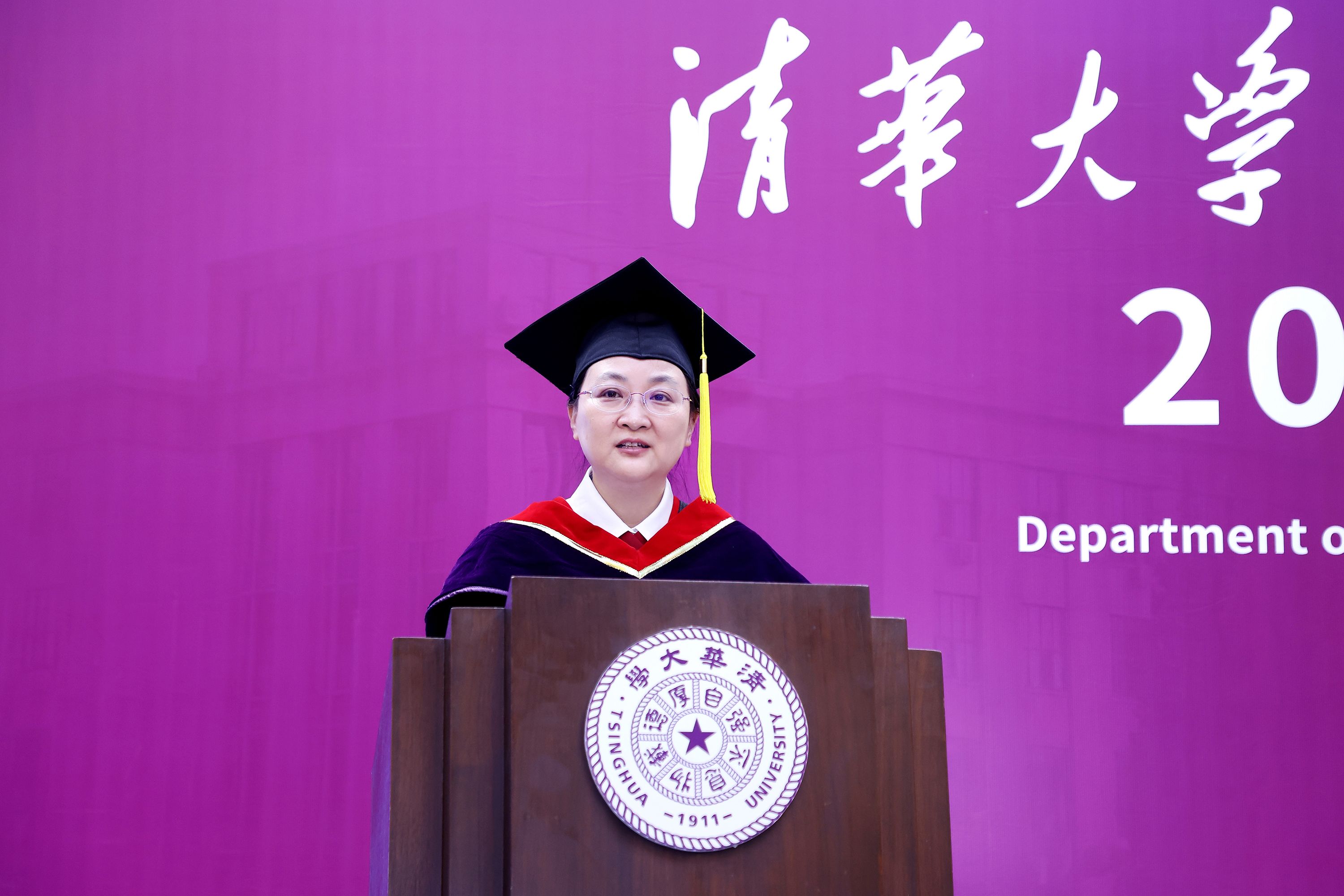 尹霞以“锐意进取 勇当国任”为主题作主题发言。她回顾了近年来计算机系师生共同经历的重大时刻,总结了计算机系学生在学习科研、文艺体育等方面取得的丰硕成绩,并向毕业生提出三点希望:一是锐意进取,成为科技创新的先锋者;二是担当国任,成为战略能力的建设者;三是勤学不辍,成为终身学习的实践者。在同学们即将启程之际,尹霞祝愿同学们前程似锦,不忘初心,以卓越的智慧和担当为民族复兴和人类进步贡献力量。
