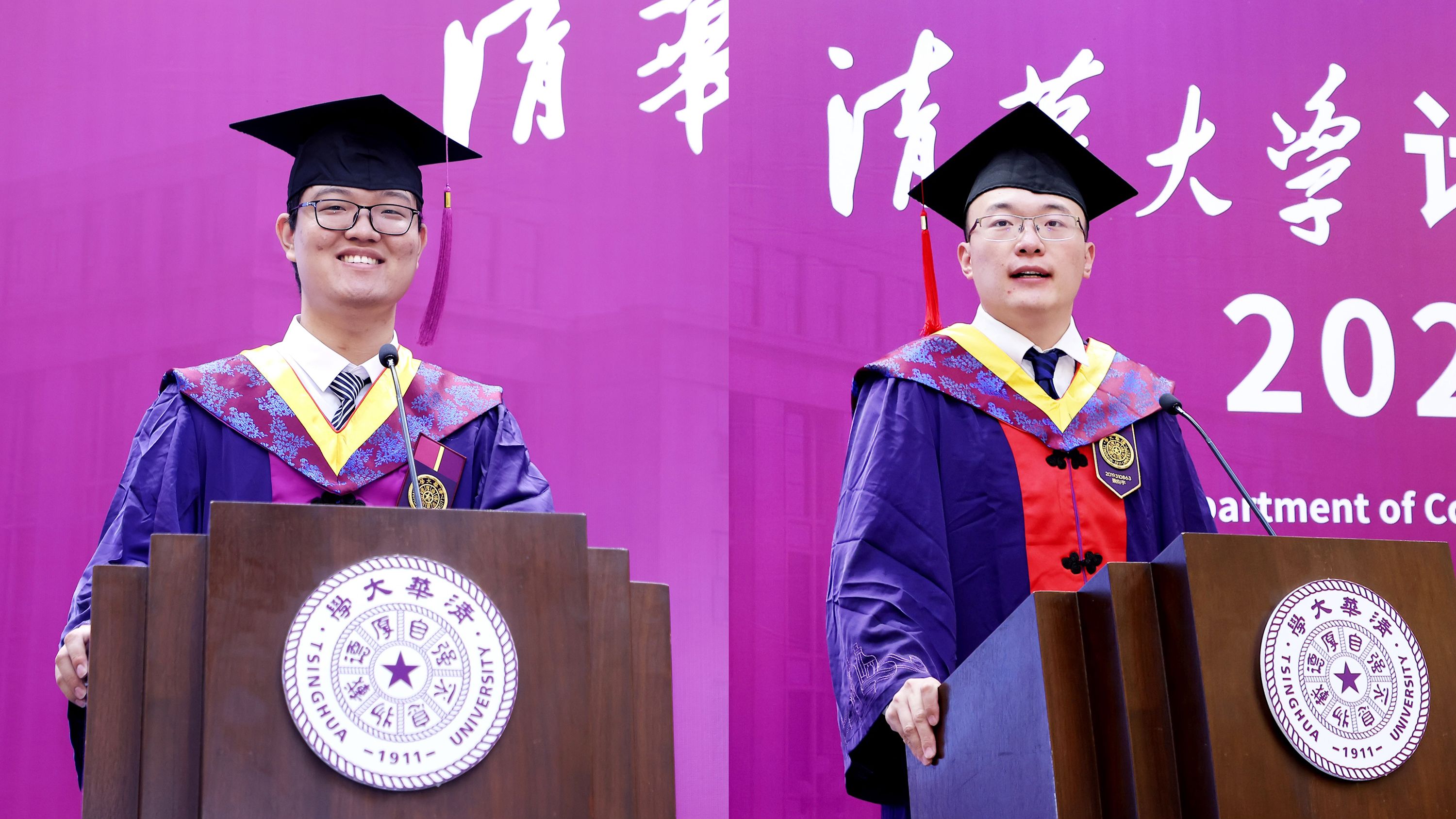 计04班高焕昂、高性能所魏钧宇分别作为本科生和研究生代表发言。他们回顾了在计算机系的学习和生活经历,分享了成长心得和感悟,表达了对母校和老师的感激之情,并承诺将带着所学的知识和技能,勇敢地面对未来的挑战,为社会的发展贡献力量。