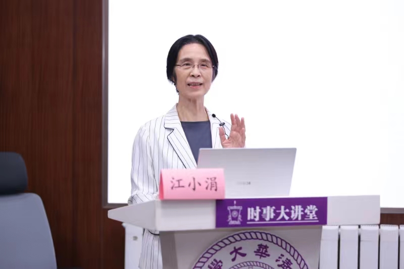谈及现代化建设的新要求,江小涓强调“培养新一代接班人”的重要性。她指出,二十届三中全会对科技教育做出了全新部署,要求切实推进科技自立自强和创新驱动发展,促进科技教育和人文教育深度融合。同时,江小涓也寄语高校师生和新时代青年:高校师生工作要理解新变化、新问题、新要求,加强知识培养、能力培养、眼界培养和情怀培养,增强人文关怀,平衡多元诉求,培养出适应新时代的接班人。最后,她鼓励青年学子立足国家发展大局,培养现代化视野,勇于创新、接续奔跑、砥砺奋斗,筑牢中国式现代化新征程上的青年力量。