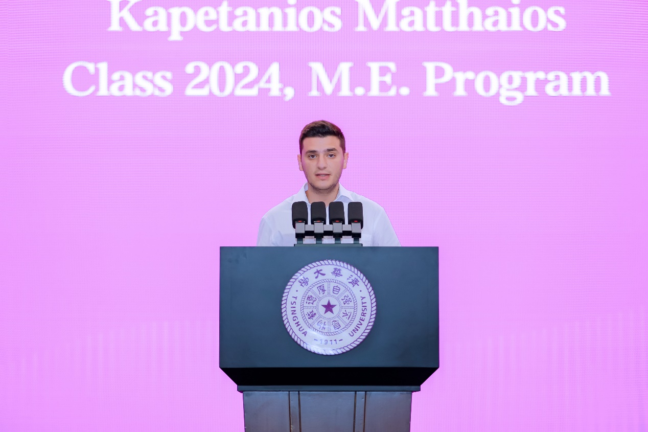 国际新生代表、物流工程与管理专业硕士生马修(Kapetanios Matthaios)来自希腊雅典,他感谢清华给予自己改变人生的机会,并表达了自己对中国语言和文化的热爱以及对未来全新学术旅程的期待。
