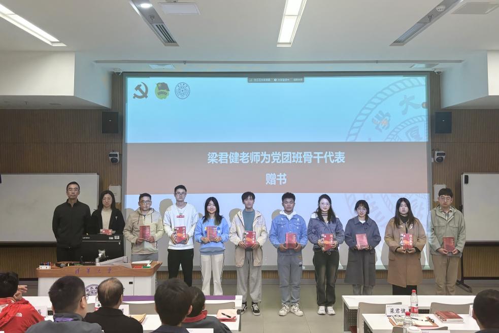 活动中,梁君健向五院系党团班骨干赠送《科技星光·这才是我们应该追的星》和《国之脊梁——中国院士的科学人生百年》两本书籍,希望同学们以书为媒,传承科学精神,共筑集体力量。