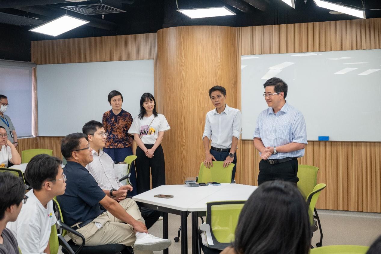 在香港理工大学,机械工程学系主任苏众庆以及多位青年教师与实践支队队员们展开了一场别开生面的交流会。苏众庆等人以产学研合作为主题介绍了香港高校在人才培养、科研创新中与内地高校的异同之处,随后带领队员们实地观看了触觉模组、潮汐发电机模型等多种前沿成果。